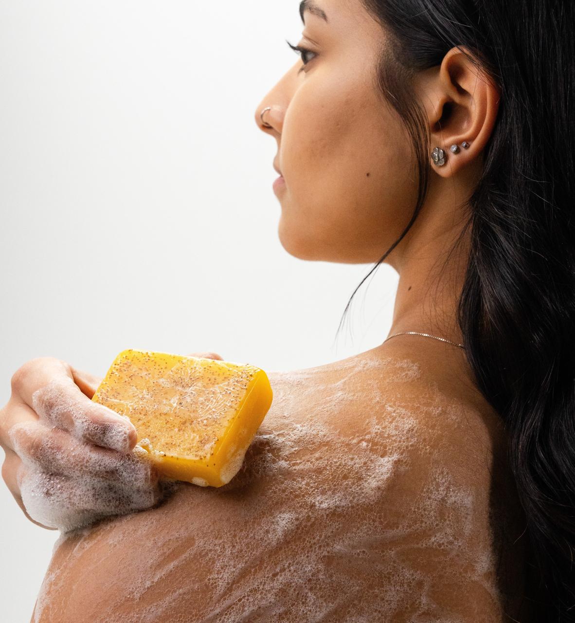 Nettoyage : Applique le savon sur ta peau humide pour éliminer impuretés et excès de sébum.
